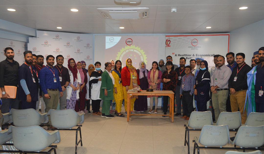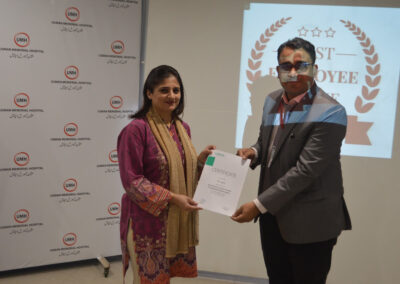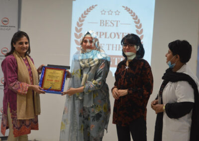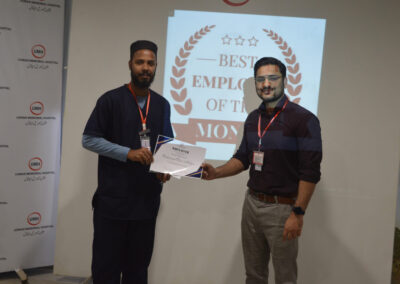 ایمپلوئی آف دی منتھ کے ایوارڈز جناب طلحہ احمد (اسسٹنٹ مینیجر فنانس) کو ایڈمن ڈیپارٹمنٹ سے اور مسٹر عمر صدیقی کو او پی ڈی ڈیپارٹمنٹ سے ان کی شاندار کارکردگی اور لگن کے اعتراف میں دیے گئے۔