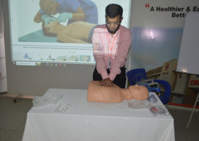 یہ سیشن ڈاکٹر ہمایوں بن عرفان، سربراہ میڈیکل سروسز، کی نگرانی میں منعقد ہوا اور اس میں بنیادی لائف سپورٹ (CPR، AED) پروگرام کے نصاب کے مطابق شرکاء کی صلاحیتوں کا جائزہ لیا گیا۔